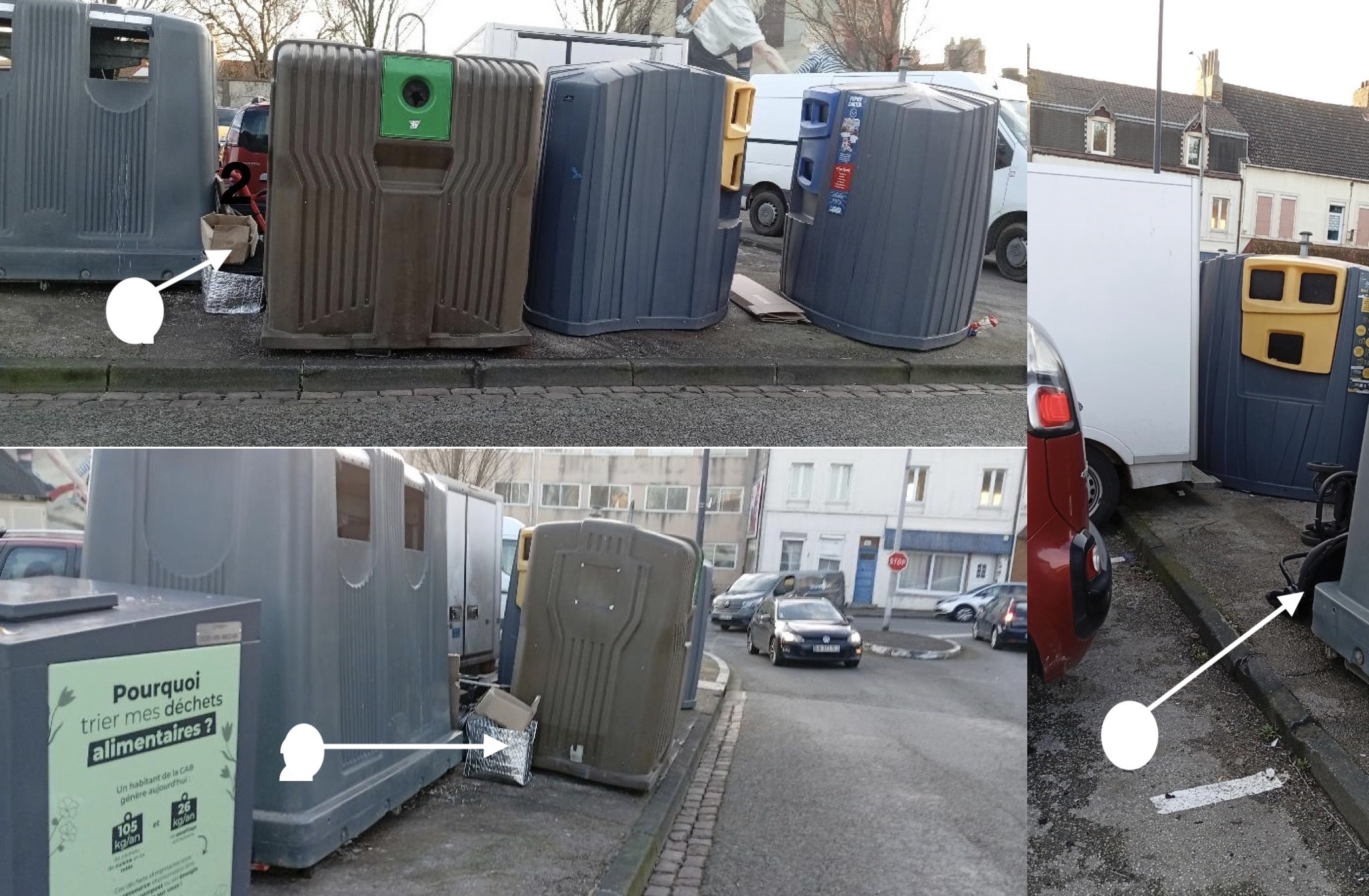 Note à benêts: Et après cela, faut-il encore s'étonner quand des usagers négligents déposent n'importe quels déchets, n'importe comment, n'importe où autour des bennes..?